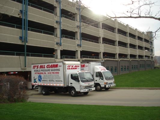 It’s All Clan Inc can clean not only concrete ground areas but concrete or block walls, ceilings and pipes. They have cleaned many major parking garages around the greater Pittsburgh and the Western Pennsylvania area.